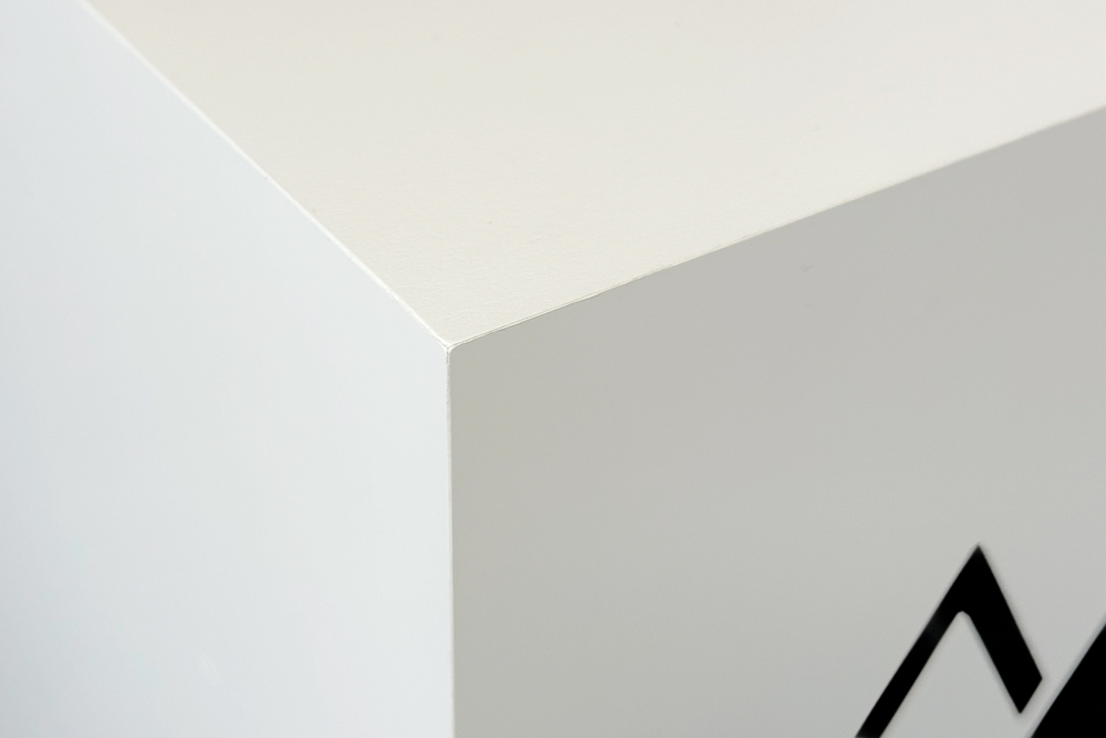 Celé provedení je uhlazené – bez přebytečného lepidla, bez šmouh, nečistot nebo jakýchkoliv nerovností, které by kazily celkový dojem. Díky tomu vypadá podstavec maximálně „clean“ a je ideální i pro prezentaci produktů, kde záleží na každém detailu.