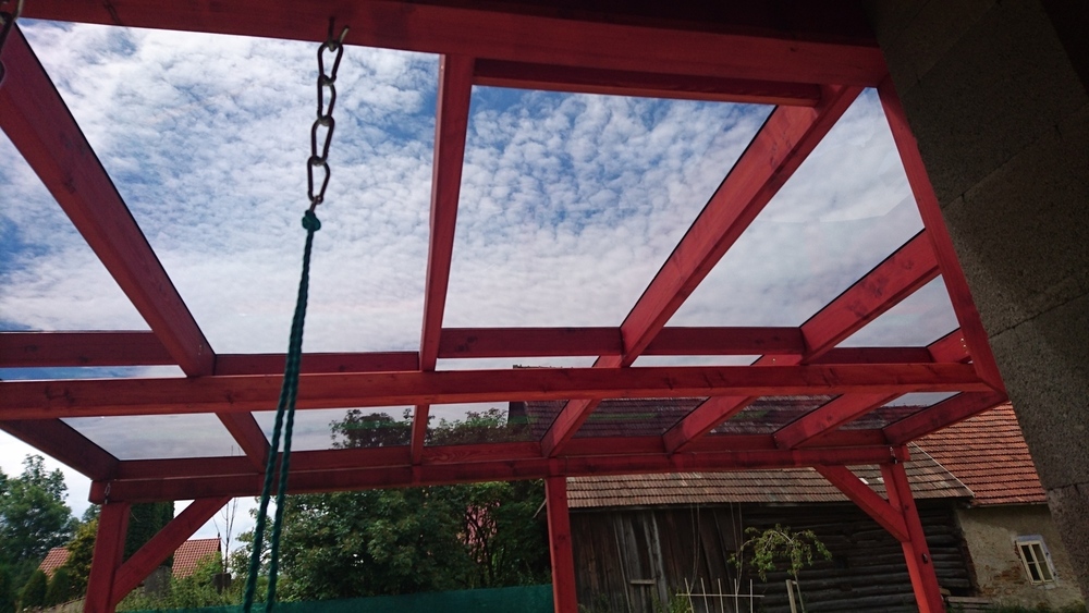 má výborné stínící vlastnosti, rozptyluje světlo a teplo, díky tomu je prostor pod přístřeškem přijemně prosvětlený, ale nepřehřívá se. Hodí se tedy zejména na zakrytí samostatných pergol a přístřešků.