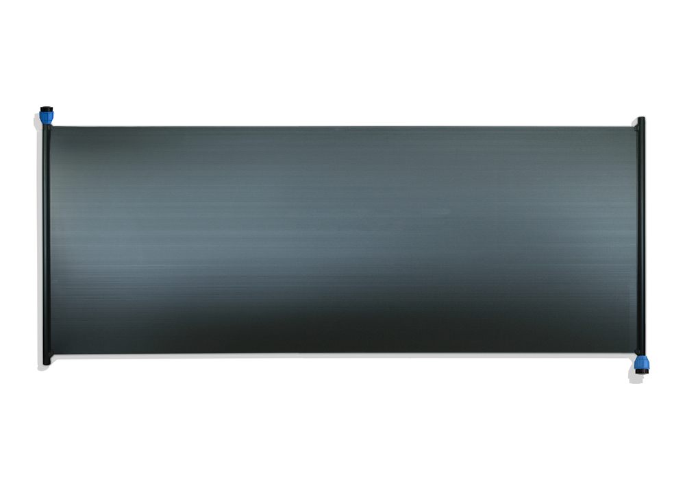 o rozměrech 1200x3000 mm s plochou 3,6 m² a koncovkou d32 mm. Konstrukci absorbéru tvoří speciálně navržená plastová černá dutinková deska s vysokou absorpcí slunečního záření. Panel je vyroben s vysokým obsahem stabilizátorů proti působení účinků UV záření, proto se vyznačuje dlouholetou odolností a trvanlivostí materiálu. Díky aditivu snižujícím absorpci vodní páry plast odolávám vysokým teplotám vody a drží tvar.